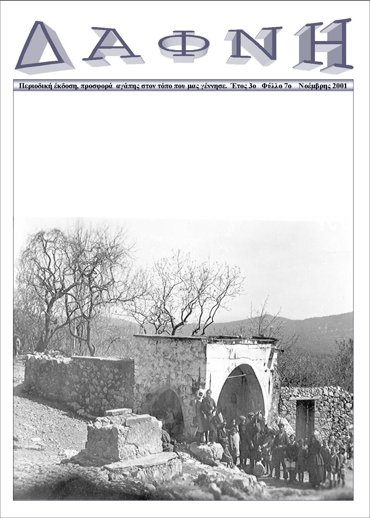 Η γενοβέζικη βρύση στην είσοδο του Δαφνώνα Χίου και το χωριοπήγαδο γεμίζουν αυτό το εξώφυλλο και η άλλη πλευρά του πηγαδιού με τα καζαναρια της εποχής εκείνης, το οπισθόφυλλο. Ακολουθούν τα περιεχόμενα: Στις Δαφνούσαινες Πέτρου Ι. Μαρτάκη, Όχι άλλο αίμα Βαγγέλη Ρουφάκη, Τιμή και μνήμη Βαγγέλη Ρουφάκη, Το μνήμα Φώτη Αγγουλέ, Της τέχνης τα μηνύματα Βαγγέλη Ρουφάκη, Ο θρήνος του περιστεριού Μαίρης Παπακωνσταντίνου, Η Βρύση Βαγγέλη Ρουφάκη, Λωλόδεντρα, Πετροχελίδονα, dafninet.gr Βαγγέλη Ρουφάκη, Ο μπαξεβάνης τ’ ουρανού Κώστα Αμπανούδη, Χιώτικη Μπαλάντα Νίκου Γιαλούρη, Μπουρλής-Τζανής «Ε θα μιλεί...» Πέτρου Ι. Μαρτάκη, Ευχαριστώ θερμά Βαγγέλη Ρουφάκη, Ομηρική Ακαδημία Βαγγέλη Ρουφάκη, Ταξιδεύοντας, Συγγνώμη και... Παράπονα Βαγγέλη Ρουφάκη, Το φως της θύελλας Μαρίας Αναστασοπούλου-Κριμιζή, Υμνοφόροι Αντώνη Λάρδα, Βολισσός, Το πετειναράκι Νίκου Γιαλούρη, Το Λαογραφικό Μουσείο Καλλιμασιάς Δημ. Μελαχροινούδη, Η Νοσταλγία του Ελάσσονος Γιούλης Βολανάκη, Από όσα θυμούμαι Δημήτρη Ν. Λαϊνά, Το αρχείο μου «Γενικά περί του χωρίου Δαφνώνος» Δημ. Μ. Μέλη, Γράμματα από τους αναγνώστες μας, Μαστιχόνερο Χ. Γελαγώτης, Γνωρίζετε ότι..., Διαδρομή Αντώνη Λάρδα, Περιεχόμενα, Θρήνος για την Περσεφόνη Πόπης Χαλκιά-Στεφάνου
