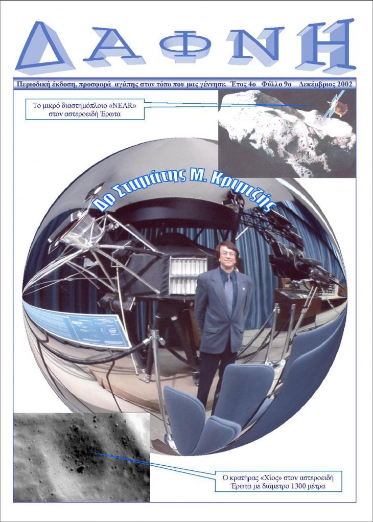 Ο μεγάλος Έλληνας αστροφυσικός Δρ Σταμάτης Κριμιζής στο εξώφυλλο αυτού του τεύχους και ο γίγας Ωρίων που έγινε αστερισμός, στο οπισθόφυλλο. Περιεχόμενα: Νύχτα Χριστουγενιάτικη Μαρίας Αναστασοπούλου, Βοηθήστε μας, Νέος Χρόνος Νέα τοπική Αυτοδιοίκηση Βαγγέλη Ρουφάκη, Η Γεύση της Ρουτίνας Νίκου Γιαλούρη, Κεφαλή Νίκου Γιαλούρη, Το φλουρί του φτωχού Παύλου Νιρβάνα, Ειν` κρυώμα Πέτρου Ι. Μαρτάκη, Χιώτικα Αφηγήματα, Ο σεισμός στη Χίο κι ο Παλιός Καταρράκτης Βαγγέλη Ρουφάκη, Από το χαλασμό του 1881 Δημ. Μελαχροινούδη, Ο Παλιός Καταρράκτης Δημ. Μελαχροινούδη, Γνωρίστε την Ελλάδα Βαγγέλη Ρουφάκη, Ομηρικής Ακαδημίας συνέχεια... Βαγγέλη Ρουφάκη, Η αναδρομική έκθεση του Νίκου Γιαλούρη Βαγγέλη Ρουφάκη, Δρ Σταμάτης Κριμιζής Βαγγέλη Ρουφάκη, Μπράβο κυρ Θανάση Βαγγέλη Ρουφάκη, Χίος Μυρωμένο νησί Αθανασίου Στάμπουλου, Μεθυσμένα βήματα Εύα Λιάρου-Αργύρη, Αποστροφία Αφροδίτη Έυα Λιάρου-Αργύρη, Το Αρχείο μου Βαγγέλη Ρουφάκη, Γράμματα από τους αναγνώστες μας, Στον οδοντογιατρό Μίμη Θεοφιλίδη, Ένα γράμμα για τον Χιώτη Αντώνη Χαβιάρα Σπύρου Γρουμπού, Ο Γίγας Ωρίων και η Χίος Ιωάν. Ρισπέν (διασκευή), Ερωτοποιός Αντώνη Λάρδα, Περιεχόμενα, Ανεμοζάλη Ευαγ. Γ. Κουτσοδόντη